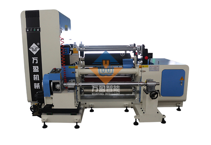 收卷方式為中心表面卷取,亦可單軸復卷,收卷軸采用專用氣脹軸,分切采用直刀或圓盤刀,可針對不同厚度材料選擇相應刀具,分切寬度任意調節。